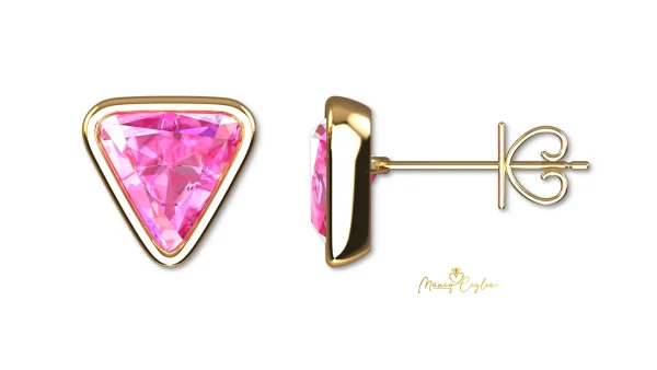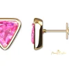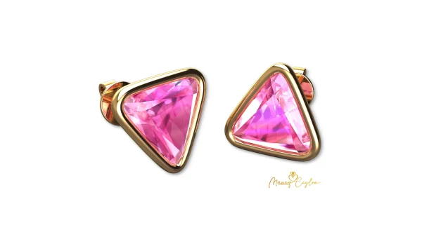 Romantic and feminine, these trillion-cut Pink Sapphire earrings symbolize love, compassion, and elegance. The vivid pink hue paired with the brilliant trillion cut creates a look that is delicate yet bold.